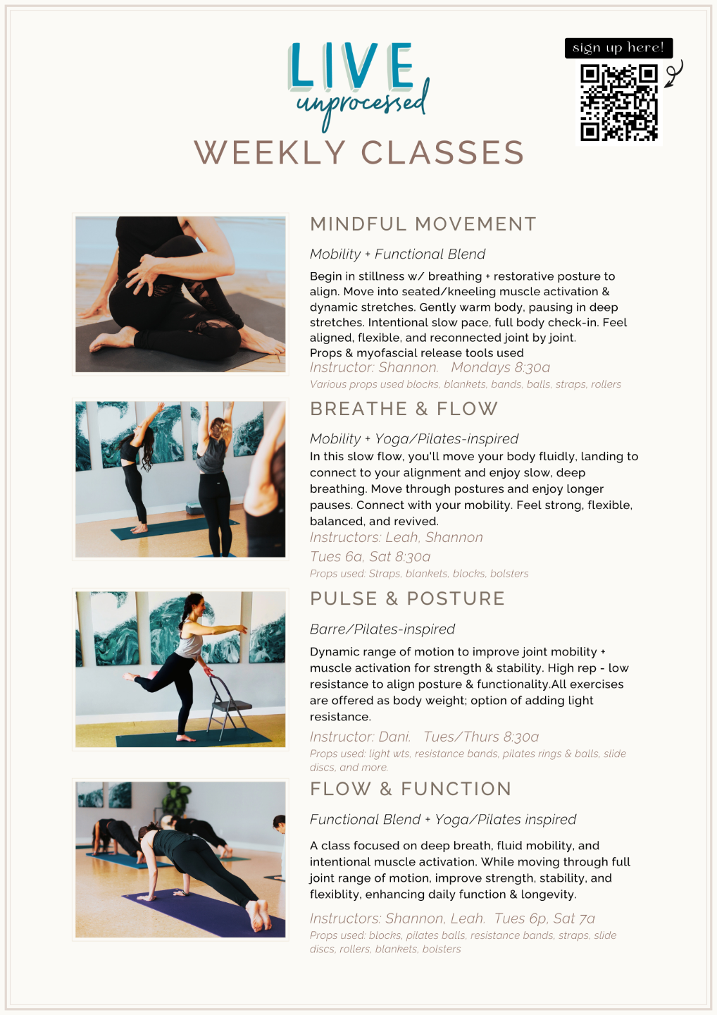 This studio is more than a place to moveāitās a community rooted in wellness, resilience, and connection. Iām so glad youāre here, and I canāt wait to walk alongside you in your journey toward living unprocessed.