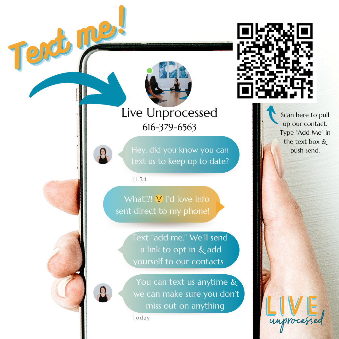 Live Unprocessed is launching a new class schedule to incorporate all elements of Food, Movement, & Mindfulness.